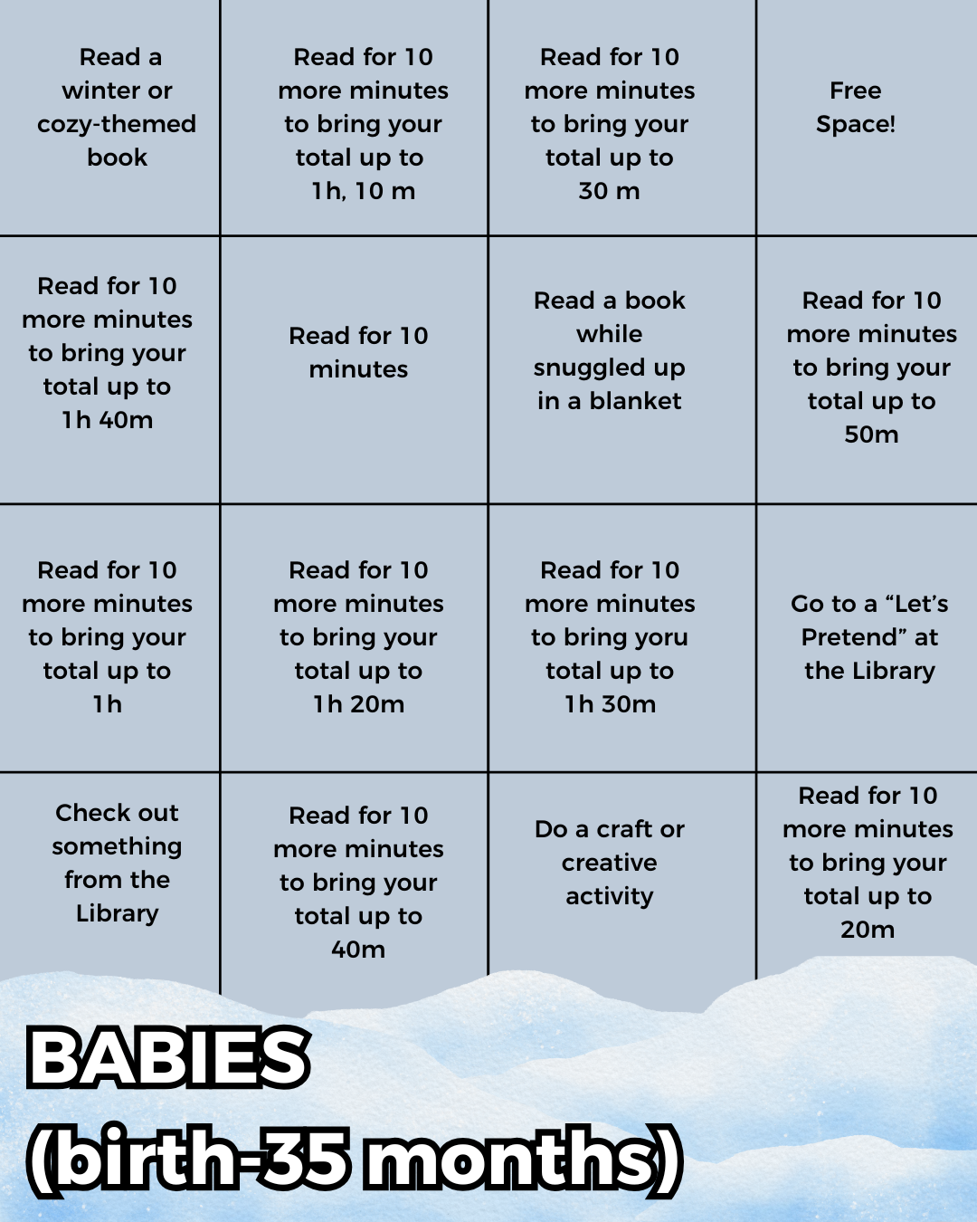 - Ages 19+: Earn a collectible 2026 “Winter Whiteout” button as part of our new Beanstack Buttons program.